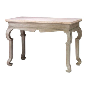 A fine George I carved and painted Marble Top George I hall table. With a scrolled molded frieze and square cabriole legs.