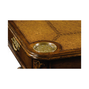 A substantial George II style square walnut card table with beautifully carved grotesque masks to the shoulders of the cabriole legs set on realistically carved lions paw feet. Inset tooled tan leather top with brass cup holders.