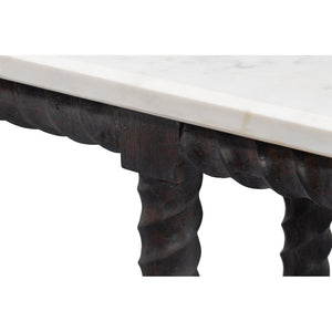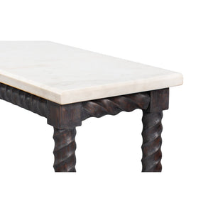 The Long Marble Top Console with Barley Twist Base captures the grandeur of traditional craftsmanship with a refined mix of natural stone and ornate woodwork. Its polished White Banswara marble top creates a luminous surface that contrasts beautifully with the deep brown base. The elongated form provides both elegance and functionality, perfect for making a statement in entryways, hallways, or behind a sofa.