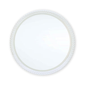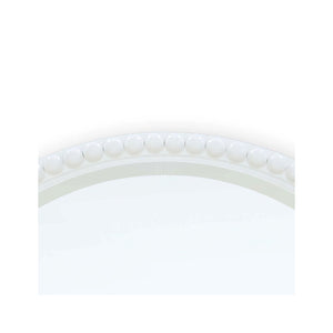 Introducing our 32" Painted Round Beaded Mirror, a perfect blend of rustic charm and timeless elegance. This mirror features a mahogany frame finished in our lightly distressed architectural white paint and adorned with intricate beading, adding a touch of sophistication and texture to any room.