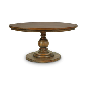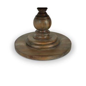 Constructed of solid mahogany and finished in our straw wash highlighting and enhancing the natural wood. With a simple round top and features a beautifully turned pedestal base that provides excellent stability and adds vintage charm.