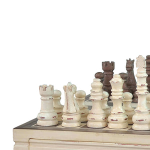 Elevate your game night with the sophisticated charm of our Brown and White Antique Style Wooden Chess Board. This exquisite piece combines timeless design influenced by the European countryside. Featuring our hand-painted lightly distressed Brown suede and Forofino white painted finish. The chessboard itself is meticulously crafted, with a classic black and white checkered pattern that sets the stage for intense and strategic play.