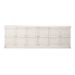 The buffet features six beautifully paneled square-framed doors, each adding a touch of classic elegance to its overall design. This traditional aesthetic is further enhanced by the antique painting technique, imbuing the piece with a sense of history and grandeur that complements any interior style, be it modern, traditional, or eclectic.