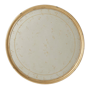 An Art Deco style silvered and gilt verre Eglomise two-tier circular table, the dished and molded edge top above a similar under tier, joined by octagonal section supports, on tapering legs.
