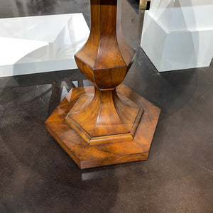 This table exudes a timeless charm that effortlessly complements any interior decor, making it a focal point of elegance and style.The single central hexagonal baluster pedestal base not only adds stability but also adds a touch of architectural elegance.