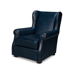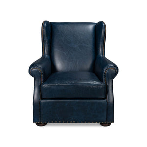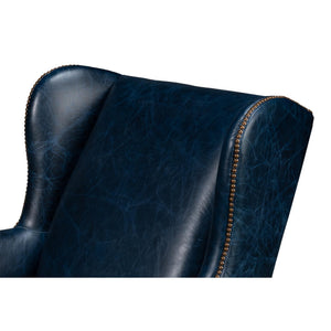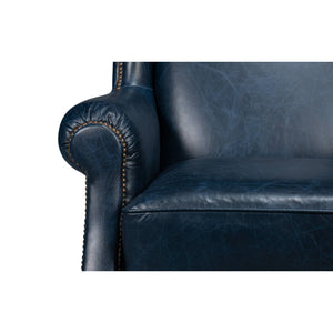 Introducing the Blue Classic Leather Armchair - Featuring a high back design for ultimate support and rolled arms with intricate pleating detail, inviting you to a world of comfort with just one look. Wrapped in Chateau Blue leather, its rich color is the epitome of luxury, bound to add a touch of class to any room.