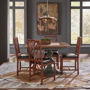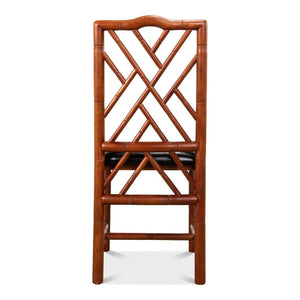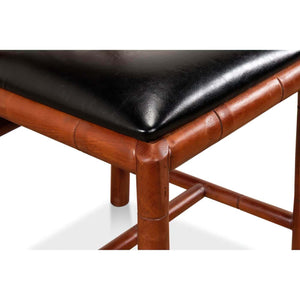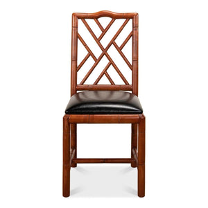 Brighton Faux Bamboo Side Chair. This hand-carved chair with a faux bamboo motif is inspired by pieces made for George IV, the Prince Regent, in the 1920s. It is shown in our antique teak finish with a faux leather seat.