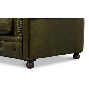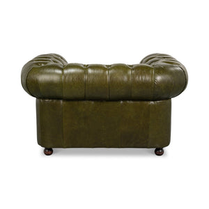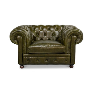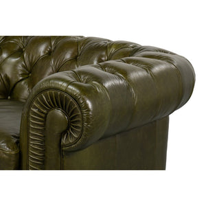 Experience unparalleled sophistication with the British Green Chesterfield Armchair, a blend of classic heritage and modern luxury. Crafted from premium top-grain leather, its rich olive green tone infuses warmth and opulence into any space. The iconic rolled arms and pleated armrests highlight meticulous craftsmanship, while the button-tufted upholstery brings timeless grandeur to the design.