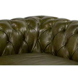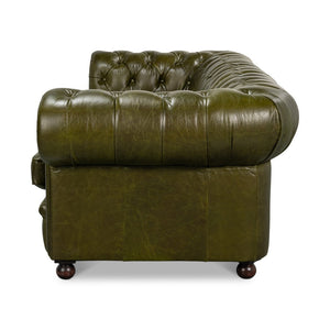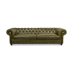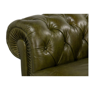 Experience unparalleled sophistication with the British Green Chesterfield Sofa, a blend of classic heritage and modern luxury. Crafted from premium top-grain leather, its rich olive green tone infuses warmth and opulence into any space. The iconic rolled arms and pleated armrests highlight meticulous craftsmanship, while the button-tufted upholstery brings timeless grandeur to the design.
