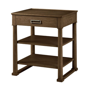 Handcrafted in oak and finished in our warm brownstone finish. The design features two lower tiers and is perfect for additional display or storage.