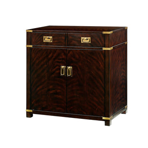 Introducing the Campaign Style Mahogany Cabinet, a perfect blend of elegance and practicality for your home. This exquisite cabinet is crafted from rich mahogany wood, offering a deep, lustrous finish that adds warmth and sophistication to any room. The brass accents provide a touch of vintage charm, highlighting the intricate craftsmanship and attention to detail.