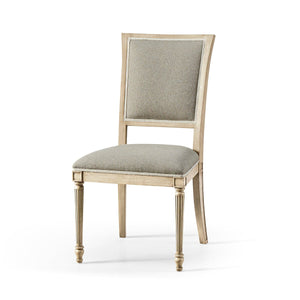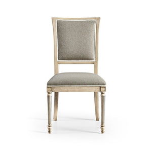 Elevate your dining experience with the timeless elegance of our Classic French Dining Chair. Crafted with meticulous attention to detail, this chair features a sophisticated London Mist wood finish and graceful front turned, tapered and fluted legs, adding a touch of European flair to any dining room.