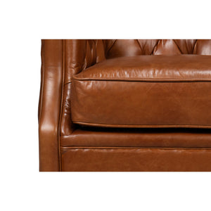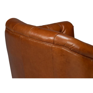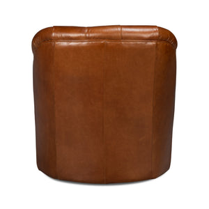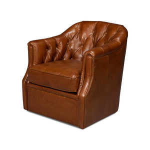 Classic Tufted Brown Leather Armchair, a classic leather upholstered tub back armchair. In our Havana Brown leather with button tufted backrest and a cushioned seat, raised on a swivel base.