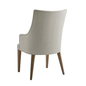 Classic Upholstered Scoop Back Armchair with an upholstered back, arm, and tight seat cushion, in the Draper performance fabric, with traditional square tapered legs in our light mangrove finish.