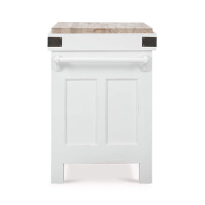 Introducing the Country Small Kitchen Island, where functionality meets style with a butcher block top. Ideal for the kitchen, this island is crafted from solid mahogany, ensuring durability and elegance. The lightly distressed architectural white finish enhances its versatile appeal, seamlessly fitting into any kitchen décor.