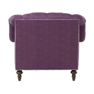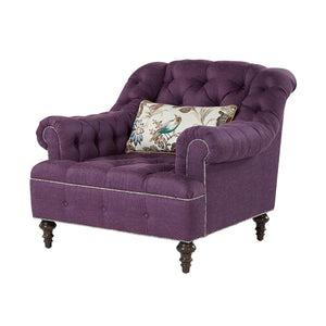 An English Classic Tufted Club Chair. This chair has a classic silhouette and features all-over tufting. It has a tight tufted seat and back with soft scrolled arms and sits on turned wood feet.