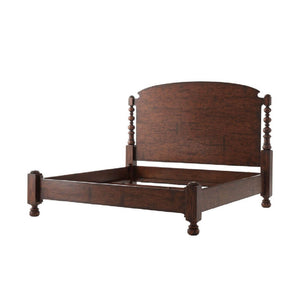 The English Country King Bed exudes timeless elegance with its masterful craftsmanship and refined design. Featuring a grand arched headboard and four stately turned columns, this bed is crafted from reclaimed oak veneer and mahogany, showcasing a rich, natural grain that enhances its heritage appeal. The paneled foot rail and turned legs add to its classic English Country aesthetic, making it a distinguished centerpiece for any luxurious bedroom.