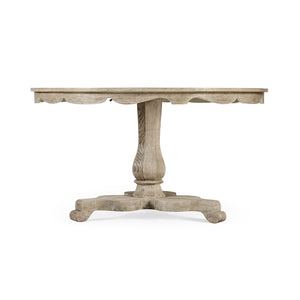 Experience the perfect fusion of transitional style and timeless craftsmanship with the English Grayed Oak Breakfast Table. Constructed with oak, it features a softly distressed greyed finish that seamlessly complements both classic and contemporary interiors. The refined urn pedestal base adds a stately presence, while the scalloped apron highlights the intricacy of artisanal workmanship.
