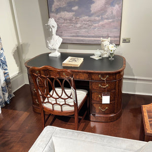 Elevate your workspace with the refined elegance of the English Leather Top Desk Table. Crafted from high-quality wood, this table boasts a luxurious figured walnut finish that exudes timeless sophistication. The top is adorned with a rich black leather surface, providing a smooth and stylish area for writing, reading, or working on your laptop.