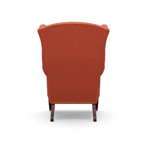 English Wingchair - An upholstered wingback armchair, the arched back and wings above a cushion seat enclosed by overscrolled arms, on fluted tapering legs terminating in brass cappings. The original George III, circa 1770.