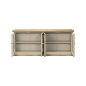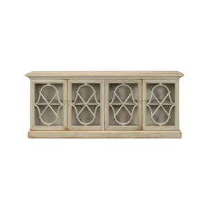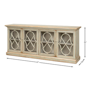 French Antique Sage Credenzanza, inspired by the 19th century French antique, this reclaimed pine sideboard has an emphasis on high drama and a high function, set apart with a graceful, feminine fretwork motif.