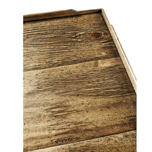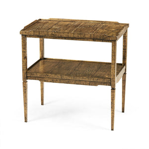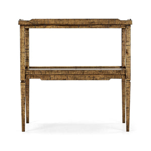 The lower shelf provides additional space for decorative displays or everyday essentials, seamlessly blending beauty with practicality. Whether placed beside a sofa or as an accent piece in a cozy nook, this table enhances the ambiance of your home with its old-world craftsmanship and rich, medium-brown driftwood finish.