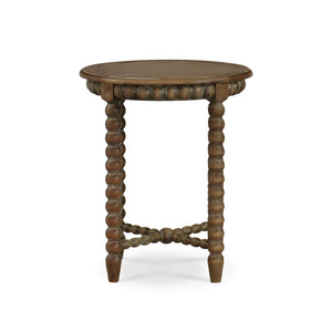 Introducing our French Country Round End Table, a timeless piece that seamlessly combines rustic charm and elegant design. This round end table features a solid wooden frame finished in a rich, straw wash finish, providing both durability and classic appeal. The table's distinctive bobbin legs add a touch of sophistication and character, making it a standout piece in any room.