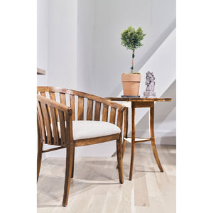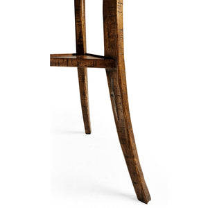 Elevate your living space with the charm and character of the French Country Round End Table - Walnut Finish. Designed with a timeless aesthetic, this table features a heavily distressed acacia wood construction that brings an air of rustic old-world charm to any room. The round tabletop sits gracefully on saber-style legs, creating a beautifully balanced silhouette.