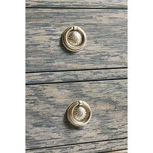 Constructed from high-quality oak, ensuring durability and longevity. With a Chipped Blue Oak finish that is crafted through a detailed process where paint is hand-applied and then carefully stripped away, revealing the natural beauty of the oak's grain beneath.