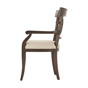 A Provincial armchair, the curved bar toprail above an "X" back and upholstered seat, on carved sabre legs. The original French Provincial, circa 1820.
