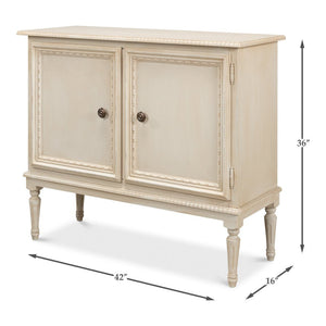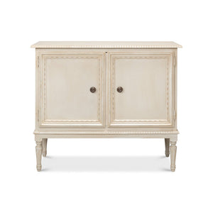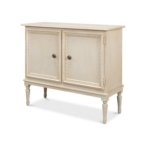 Elegance meets functionality in the French Provincial Painted Side Cabinet, a refined classic inspired by Louis XVI design. The antique painted finish is meticulously distressed to achieve a classic, aged look, while the classic carved elements enhance its charm. Raised on fluted tapered legs, this cabinet brings an air of understated luxury to any space.