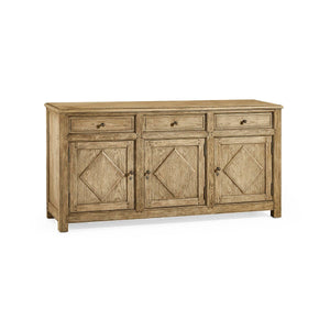 Introducing the French Provincial Sideboard Buffet, a masterpiece of traditional craftsmanship that blends luxurious design with structural perfection. Crafted from solid oak with chestnut veneers, this sideboard is finished in an alluring Stripped Brown Chestnut that radiates warmth and authenticity.