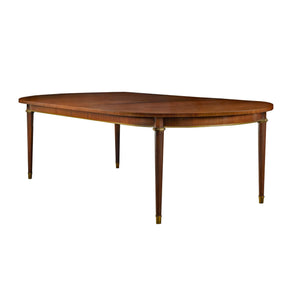 A masterpiece of timeless sophistication, the French Walnut Dining Table exudes refined elegance with its Louis XVI-inspired design. Crafted with hand-rubbed walnut veneer, this extension dining table showcases an exquisite balance of traditional craftsmanship and modern versatility. The rich walnut grain is complemented by delicate brass trim, ensuring a luxurious aesthetic that elevates any dining space.