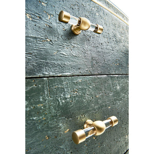 The chest's bow front adds an elegant curvature to its structure, enhancing its overall allure. With three soft-close drawers, offering ample storage space for all your bedside essentials. Each drawer is equipped with acrylic handles accented with gold, complementing the chest's luxurious finish.