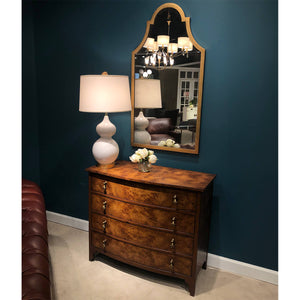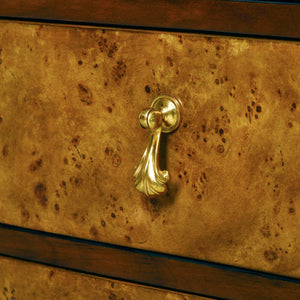 Experience the epitome of timeless elegance with the Georgian Burl Bowfront Chest. This exquisite piece showcases meticulous craftsmanship and attention to detail. The hand-rubbed rustic burl mappa veneer exudes warmth and character, while the bowfront design adds a touch of sophistication.