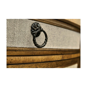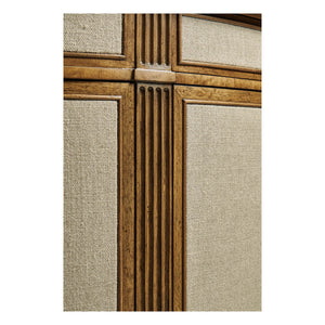 • Solid case design with Kravet linen fabric cabinet doors and understated hardware