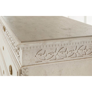 Crafted with meticulous attention to detail, the Gustavian Style Swedish Dresser features carved dental moldings and blind fret carvings, adding a touch of sophistication to its already stunning design. The dresser also comes with large, long drawers that provide ample storage space, making it the perfect choice for individuals who need a functional yet stylish piece of furniture.