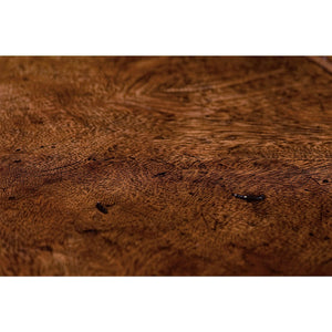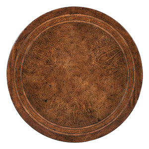 A cerejeira veneered and mahogany occasional table, the circular crossbanded top above a plain apron with a frieze drawer, on inswept splayed legs supported on a concave sided trefoil platform base with bun feet. Inspired by a 19th century Italian original.