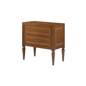 With working locks on the two drawers and raised on square tapered legs, this bedside chest is not only beautiful but functional as well.