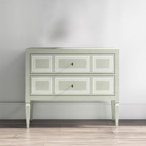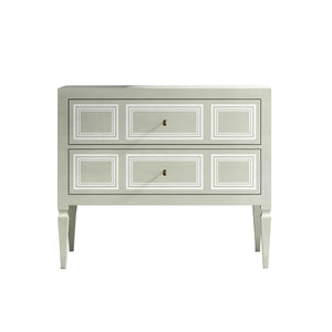 Introducing our exquisite Northern Italian Neo Classic Painted Commode, a perfect blend of classic sophistication and contemporary charm. Crafted with meticulous attention to detail, this hand-painted two-drawer commode showcases a beautiful grey-painted finish adorned with elegant ivory accents.
