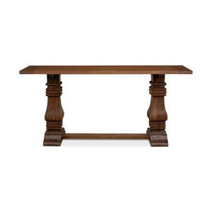 Embrace timeless elegance with the Italian Renaissance Console Table, a paragon of classic design that brings together form and function to stand as a masterpiece in your home. With its dual pedestal base featuring bold square baluster carved legs, this console table is a testament to traditional woodworking artistry.