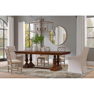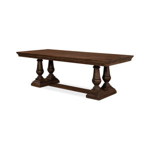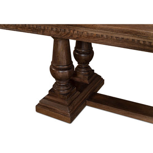 Feast in grandeur with our majestic Large French Country Dining Table, a true testament to classic elegance. This table's deep, rich hues and detailed woodwork speak of timeless luxury, while its robust double baluster trestle ends exude a sense of historic charm.