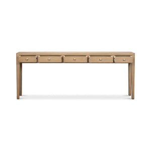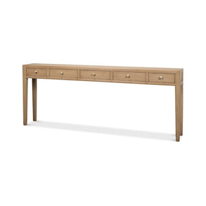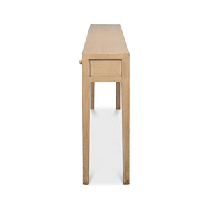 Crafted with clean lines and timeless proportions, the table reflects transitional style—balancing modern minimalism with traditional warmth. The narrow depth makes it perfect for smaller spaces, while the elongated length ensures a commanding presence. Both functional and decorative, this piece adds sophistication and everyday utility to any interior.