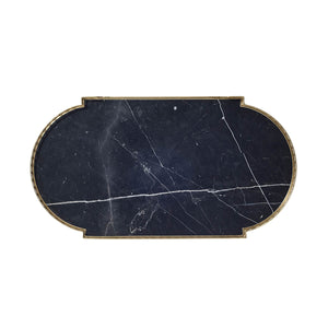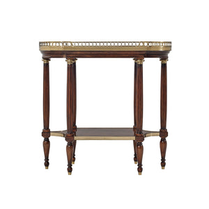Louis XVI Marble Top Lamp Table, a marble top mahogany end table, the white-veined black marble D end top with a three-quarter brass gallery on fluted supports joined by a concave-sided under tier. The original Louis XVI.