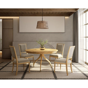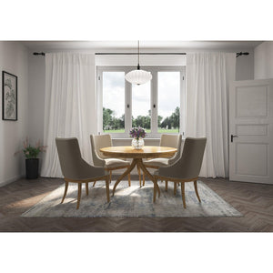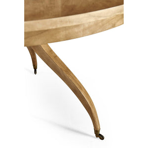 Mid Century Round Dining Table - Sun Bleached Cherry finish. Inspired by an early 19th-century Regency design, this dining table is timeless and features an elegant and functional design. The round table is perched atop sinuous, flowing classic spider legs with brass castors.
