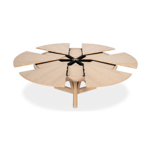 The Modern Bleached Oak Jupe Dining Table - 70" brings a timeless 19th-century innovation into the modern age. Crafted from oak in a light natural bleached oak finish, the table features a striking radial-patterned top and a unique, geometric base that blends elegance with contemporary style.
