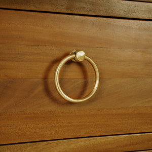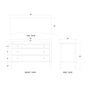 The warm tones and rich grain of the wood enhance the commode’s sophisticated appeal, making it a perfect addition to any stylish interior. The incurved front adds a distinctive touch, while the three long spacious drawers provide ample storage for your essentials. Each drawer is adorned with elegant ring pulls, adding a touch of refined charm to this exquisite piece.