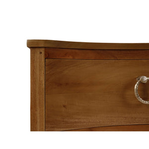 The warm tones and rich grain of the wood enhance the table's sophisticated appeal, making it a perfect addition to any stylish interior. The incurved front adds a distinctive touch, while the two drawers provide ample storage for your essentials. Each drawer is adorned with elegant ring pulls, adding a touch of refined charm to this exquisite piece.