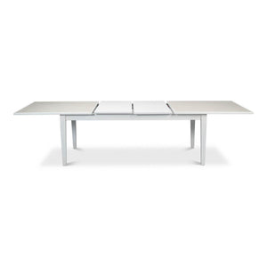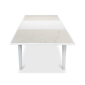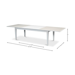 Featuring clean lines and a sleek, contemporary design, the Neo Classic White Painted Extension Table offers a striking combination of a Cortina White base and a stunning Porcelain top. With dimensions starting at 81 inches wide by 41 inches deep and expanding up to 120 inches wide, all while standing at a height of 30 inches, this table is the epitome of versatility and modern elegance.