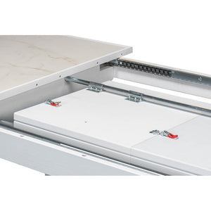Its ability to transition in size makes it a perfect choice for those who love to entertain, ensuring that it can adapt from intimate family dinners to grand gatherings with ease. The porcelain top provides not only a beautiful surface but also a durable one, hygienic one. This table doesn't just fill a space; it completes it, bringing a timeless allure to any dining area.